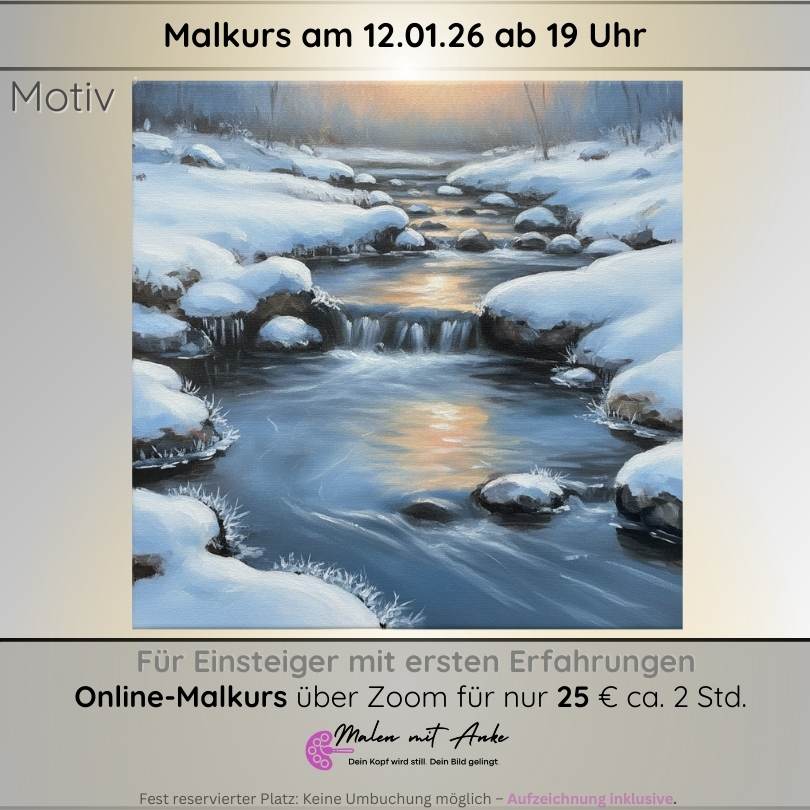 Malkursmotiv Winterlicher Bachlauf, Malen mit Anke